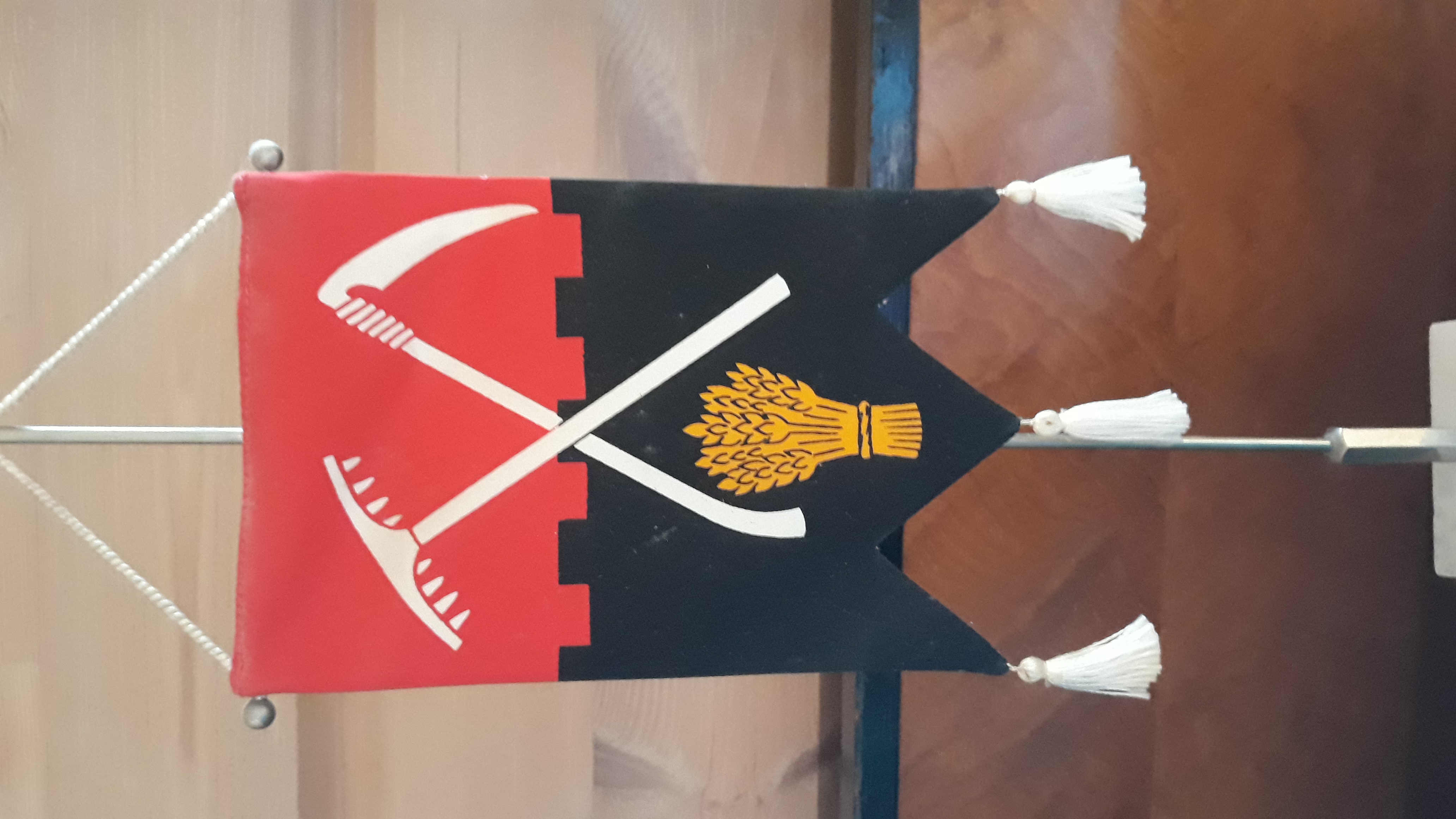 Vaakunan heraldiset piirteet viittaavat kyllä Karjalaan (musta ja punainen väri) ja erittäin vahvasti maatalouteen (tähkä, harava ja viikate), eivät niinkään yksittäisen perheen tai suvun piirteisiin. Mustalla ilmaistu muurinharja ei sekään ole erityisen yksityinen elementti. Valitettavasti tämän pidemmälle en päässyt. Toivottavasti joku vastausten lukija tunnistaa tämän vaakunan.