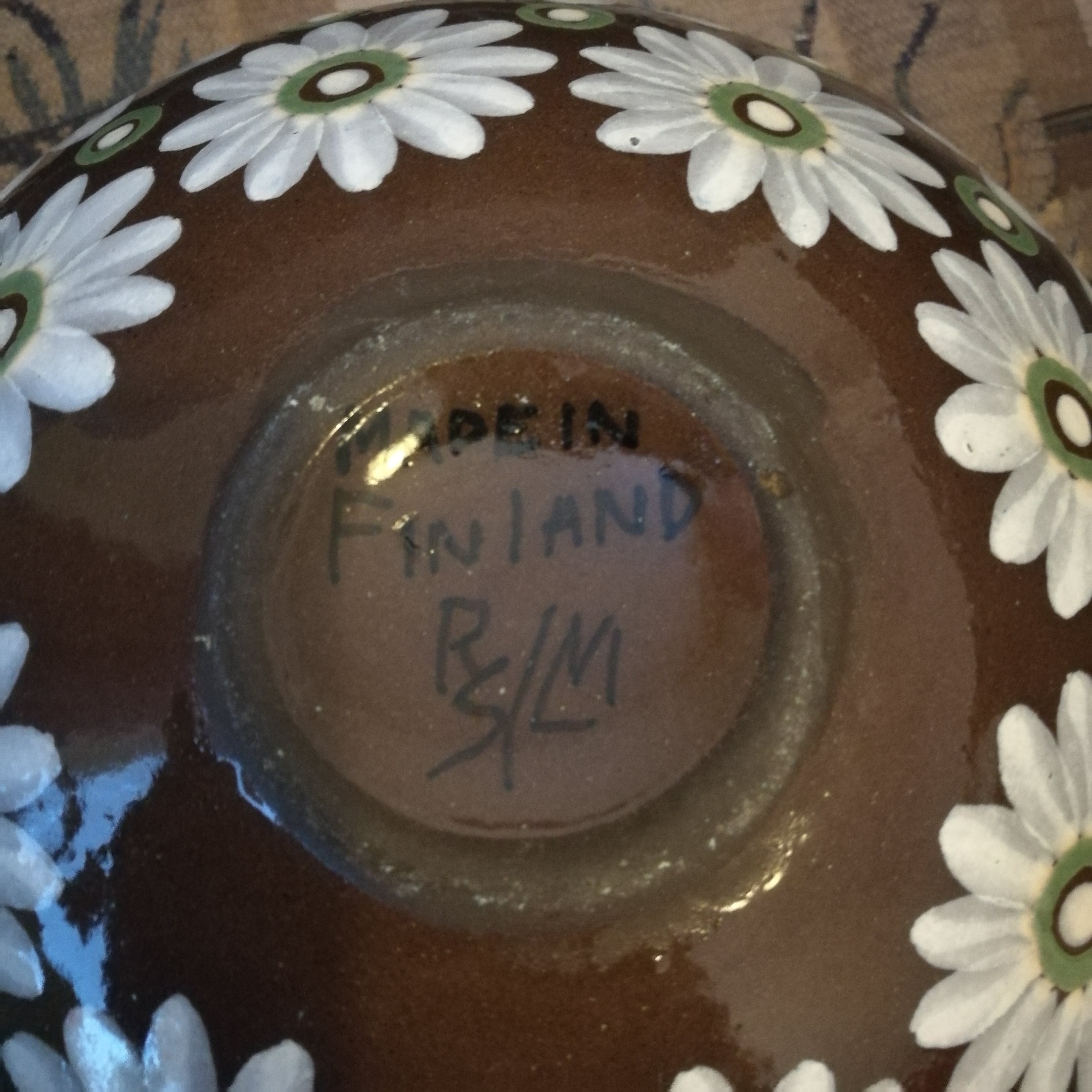 Onkohan tämä maljakko kuputtaan saven? Pohjassa teksti Made in Finland ja kirjaimet RS / LM