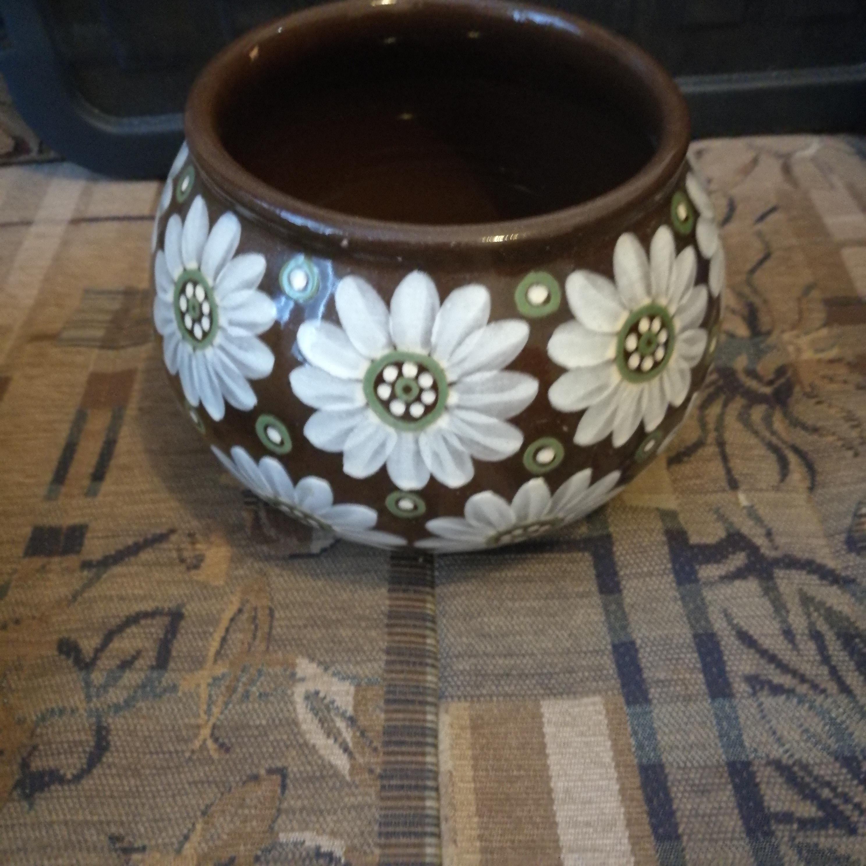 Minulla on erimuotoinen, mutta samantapainen kukkakuvioinen maljakko, jonka pohjassa lukee KUPITTAAN SAVI ja samat nimikirjaimet.