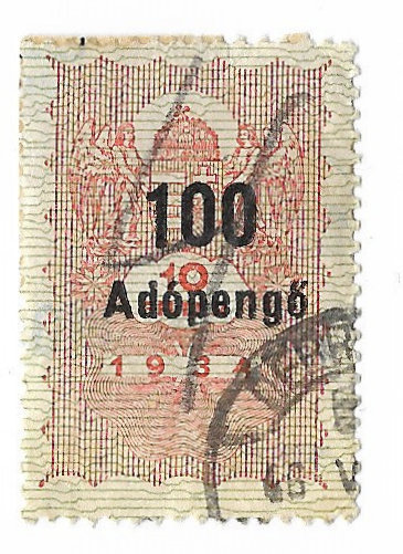 Postimerkin 2 lisäpainama liittyy Unkarissa vuonna 1946 väliaikaisesti käytössä olleeseen adópengő-rahayksikköön, joka otettiin käyttöön massiivisen inflaation saamiseksi hallintaan.